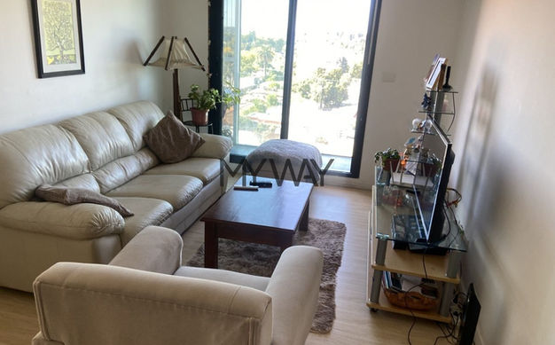Living comedor con salida a terraza balcón, cocina definida con terraza de servicio, 2 dormitorios y baño.